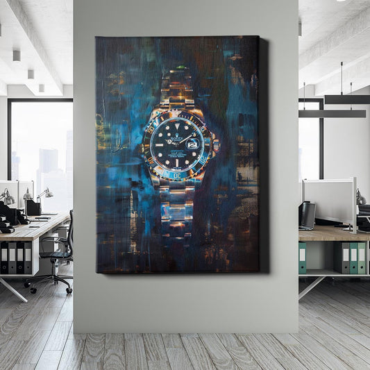Normaler Preis Von 69,90 €Normaler PreisStückpreis / proVerkaufspreis Von 69,90 €Dieses kunstvolle Bild zeigt eine luxuriöse Rolex Submariner, inszeniert in einem stilvollen, abstrakten Hintergrund mit tiefblauen und goldenen Akzenten. Die glänzende Oberfläche der Uhr reflektiert Eleganz und Exklusivität und macht dieses Kunstwerk zum perfekten Statement-Piece für Uhrenliebhaber und Luxusfans.
