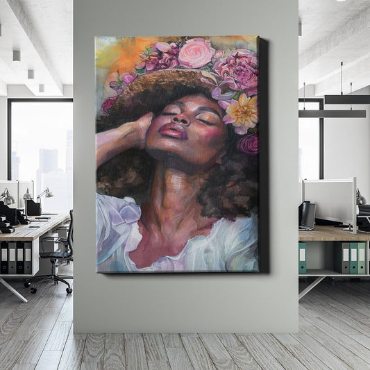 Normaler Preis Von 69,90 €Normaler PreisStückpreis / proVerkaufspreis Von 69,90 €Dieses kunstvolle Porträt fängt die pure Harmonie und Eleganz einer Frau ein, die mit geschlossenen Augen in einem Moment der Ruhe schwebt. Der Blumenkranz und die sanften Farben verstärken die Ausstrahlung von Naturverbundenheit und innerem Frieden. Ein Bild, das die Schönheit und Gelassenheit des Augenblicks einfängt.