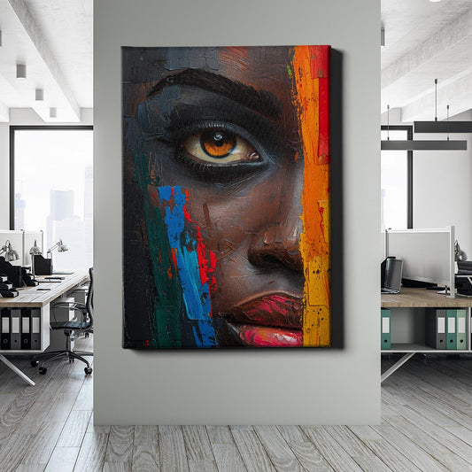 Normaler Preis Von 69,90 €Normaler PreisStückpreis / proVerkaufspreis Von 69,90 €Dieses faszinierende Kunstwerk zeigt das eindringliche Auge einer Frau, das von kräftigen Farben und rauen Strukturen umrahmt wird. Die Mischung aus Realismus und abstrakter Malweise verleiht dem Bild eine starke emotionale Tiefe und Intensität. Ein Blick, der durch Farben und Kontraste eine Geschichte erzählt.