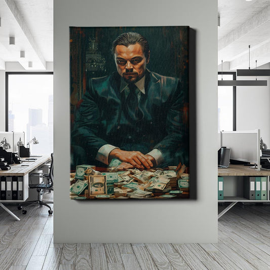 Normaler Preis Von 69,90 €Normaler PreisStückpreis / proVerkaufspreis Von 69,90 €Dieses beeindruckende Kunstwerk zeigt Leonardo DiCaprio in einer mächtigen Pose, umgeben von einem Berg aus Geld. Sein intensiver Blick und die luxuriöse Atmosphäre vermitteln ein Gefühl von Macht, Ehrgeiz und unaufhaltsamem Erfolg. Ein perfektes Statement-Piece für alle, die nach Inspiration und Dominanz streben.