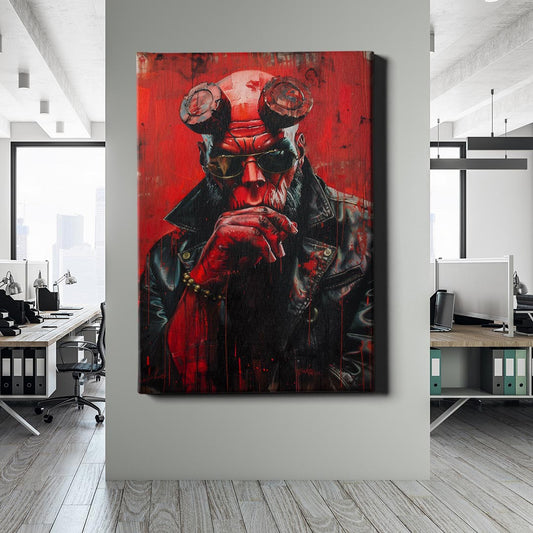 Normaler Preis Von 69,90 €Normaler PreisStückpreis / proVerkaufspreis Von 69,90 €Ein furchtloser Charakter mit dämonischen Zügen, gekleidet in eine schwarze Lederjacke und umhüllt von feurigem Rot. Die dunkle Brille und die markante Pose verleihen ihm eine mysteriöse und unbezwingbare Ausstrahlung. Ein beeindruckendes Kunstwerk für Liebhaber von düsteren, rebellischen Motiven.