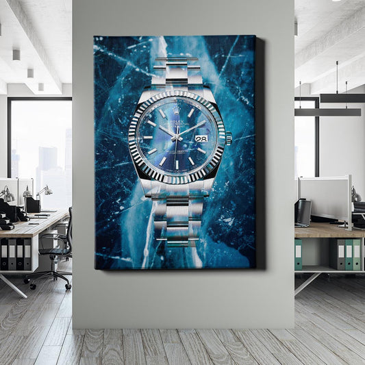 Normaler Preis Von 69,90 €Normaler PreisStückpreis / proVerkaufspreis Von 69,90 €Dieses beeindruckende Kunstwerk zeigt eine luxuriöse Rolex in einem stilvollen, eisblauen Design. Die edle Uhr liegt auf einem gefrorenen Hintergrund, der Eleganz, Exklusivität und Perfektion symbolisiert. Perfekt für Liebhaber hochwertiger Uhren und Luxusgüter, die ein einzigartiges Statement für ihre Räume suchen.