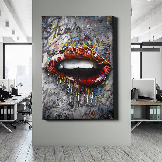 Normaler Preis Von 69,90 €Normaler PreisStückpreis / proVerkaufspreis Von 69,90 €Dieses faszinierende Kunstwerk kombiniert urbane Graffiti-Kunst mit sinnlicher Ästhetik. Die detailreich gestalteten Lippen tropfen in leuchtenden Farben und verschmelzen mit dem dynamischen Hintergrund aus Sprühfarbe und Street-Art-Elementen. Ein echtes Highlight für moderne Räume, das Individualität und künstlerischen Ausdruck perfekt vereint.
