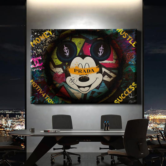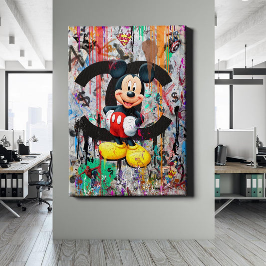 Normaler Preis Von 69,90 €Normaler PreisStückpreis / proVerkaufspreis Von 69,90 €Mickey Mouse strahlt vor einem riesigen Chanel-Logo, umgeben von wilden Graffiti-Elementen, Dollarzeichen und Superhelden-Symbolen. Ein Mix aus Street Art, Luxus und Popkultur – ein Symbol für die Verschmelzung von Nostalgie und Moderne. Dieses Kunstwerk feiert die Macht der Markenwelt und die kindliche Freude zugleich.