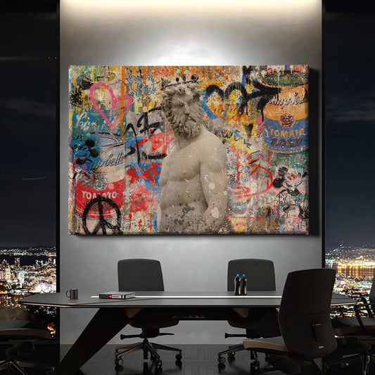 Normaler Preis Von 69,90 €Normaler PreisStückpreis / proVerkaufspreis Von 69,90 €Dieses Kunstwerk sprengt Grenzen und vereint klassische Ästhetik mit urbaner Street-Art. Farben, Symbole und Graffiti erzählen eine rebellische Geschichte zwischen Tradition und Moderne. Ausdrucksstark, lebendig, einzigartig.