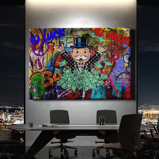 Normaler Preis Von 69,90 €Normaler PreisStückpreis / proVerkaufspreis Von 69,90 €Mr. Monopoly taucht in eine luxuriöse Welt aus Geld, Statussymbolen und Erfolgsslogans ein. Ein humorvolles und zugleich provokantes Kunstwerk über Reichtum, Motivation und den Traum vom großen Geld.