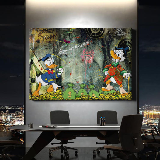 Normaler Preis Von 69,90 €Normaler PreisStückpreis / proVerkaufspreis Von 69,90 €Dieses kreative Kunstwerk vereint Humor und Reichtum in einem einzigartigen Design. Die berühmten Enten genießen ihr Vermögen in einer Welt voller Luxus und Gold. Perfekt für alle, die Kunst mit einem Augenzwinkern lieben!