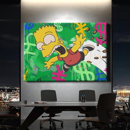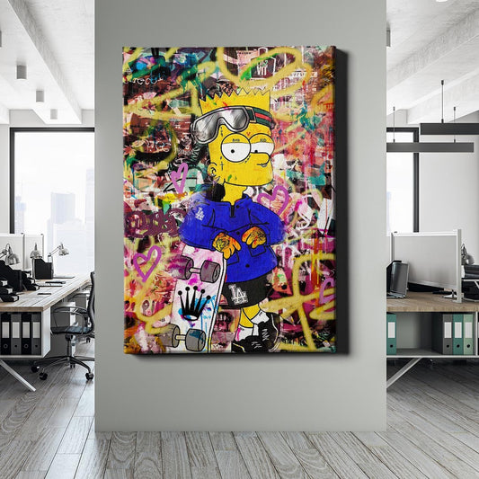 Normaler Preis Von 69,90 €Normaler PreisStückpreis / proVerkaufspreis Von 69,90 €Ein rebellisches Street-Art-Kunstwerk, das Bart Simpson in einem urbanen, hip-hop-inspirierten Look zeigt. Mit Designer-Outfit, Tattoos und einem Skateboard in der Hand strahlt er pure Coolness aus, während der Graffiti-Hintergrund das Bild zu einem energiegeladenen Hingucker macht. Perfekt für Fans von Popkultur, Streetwear und urbaner Kunst.