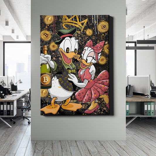 Normaler Preis Von 69,90 €Normaler PreisStückpreis / proVerkaufspreis Von 69,90 €Dagobert Duck und Daisy feiern den Erfolg in der digitalen Finanzwelt! Umgeben von funkelnden Bitcoin- und Ethereum-Münzen, Champagnerflaschen und Luxusmode strahlt dieses Bild puren Reichtum und Wohlstand aus. Die goldene Krone über Dagoberts Kopf symbolisiert die Herrschaft über die neue Krypto-Ära. Ein Kunstwerk für alle, die an finanziellen Erfolg und digitale Investments glauben.