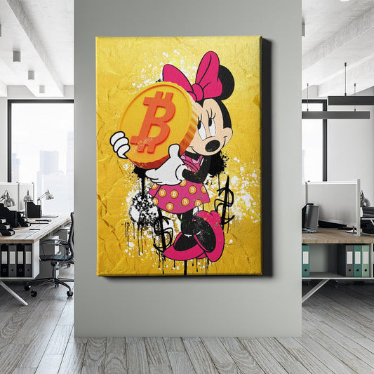 Normaler Preis Von 69,90 €Normaler PreisStückpreis / proVerkaufspreis Von 69,90 €Minnie Mouse in einem luxuriösen Street-Art-Stil, umgeben von goldener Pracht und Bitcoin-Symbolen. Das Bild verbindet klassische Cartoon-Ästhetik mit moderner Finanzkultur und symbolisiert den digitalen Reichtum der neuen Ära. Der goldene Hintergrund unterstreicht den Wert und die Kraft von Krypto-Investitionen – ein perfektes Statement für Krypto-Enthusiasten und Kunstliebhaber gleichermaßen.