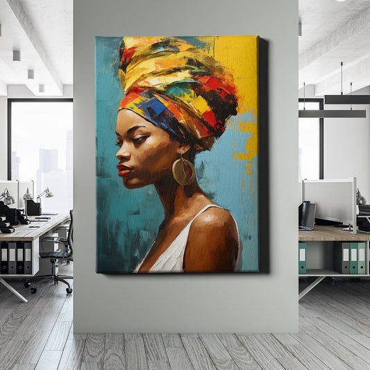 Normaler Preis Von 69,90 €Normaler PreisStückpreis / proVerkaufspreis Von 69,90 €Dieses beeindruckende Kunstwerk zeigt das stolze und elegante Porträt einer Frau mit farbenfrohem Kopftuch. Die kraftvollen Pinselstriche und die lebendige Farbpalette verleihen dem Bild eine warme, dynamische Ausstrahlung. Perfekt für alle, die ausdrucksstarke Porträtkunst mit kultureller Tiefe und Schönheit schätzen.