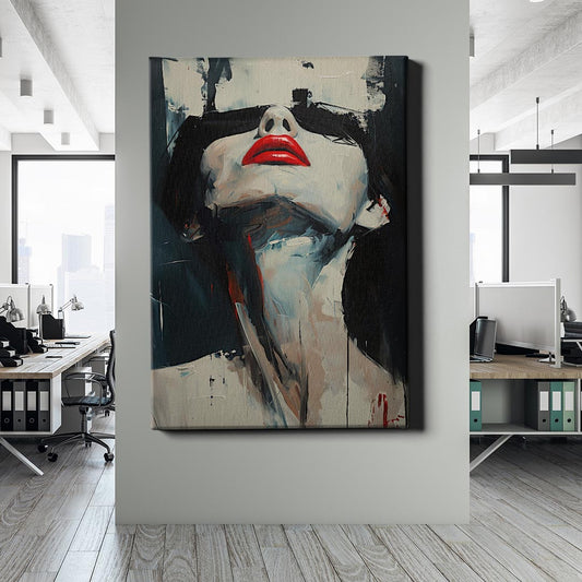 Normaler Preis Von 69,90 €Normaler PreisStückpreis / proVerkaufspreis Von 69,90 €Dieses ausdrucksstarke Kunstwerk zeigt das abstrakte Porträt einer Frau, deren Augen von kräftigen Pinselstrichen verborgen sind, während ihre roten Lippen im Mittelpunkt stehen. Die Komposition symbolisiert unterdrückte Sehnsüchte, innere Konflikte oder die Suche nach Identität. Die rohe, expressive Malweise verleiht dem Bild eine emotionale Tiefe und macht es zu einem echten Statement-Piece.