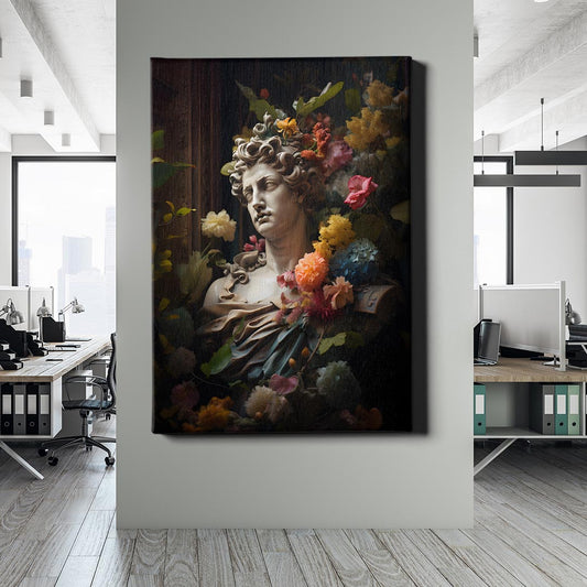Normaler Preis Von 69,90 €Normaler PreisStückpreis / proVerkaufspreis Von 69,90 €Dieses kunstvolle Motiv zeigt eine klassische Apollo-Statue, umgeben von üppigen, farbenfrohen Blumen. Die harmonische Verbindung von antiker Skulptur und natürlicher Schönheit verleiht dem Bild eine elegante und zeitlose Ausstrahlung. Ideal für Liebhaber von klassischer Kunst und stilvoller Wohnraumgestaltung.