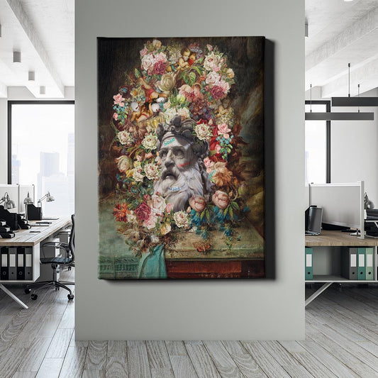 Normaler Preis Von 69,90 €Normaler PreisStückpreis / proVerkaufspreis Von 69,90 €Ein faszinierendes Kunstwerk, das klassische Barock-Ästhetik mit modernen, rebellischen Elementen vereint. Die marmorne Büste, verziert mit Graffiti-ähnlichen Schriftzügen, steht im Kontrast zur üppigen Blumenpracht und den verspielten Putten. Diese einzigartige Mischung aus Vergangenheit und Gegenwart macht das Bild zu einem echten Hingucker für Kunstliebhaber, die das Außergewöhnliche suchen.