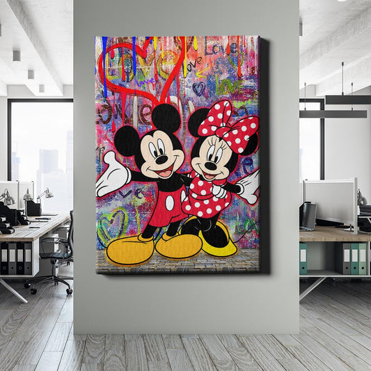 Normaler Preis Von 69,90 €Normaler PreisStückpreis / proVerkaufspreis Von 69,90 €Mickey und Minnie Mouse als zeitlose Ikonen der Liebe, vereint in einem leuchtenden Street-Art-Design. Die bunte Graffiti-Kulisse mit Herzmotiven verleiht dem Bild eine urbane, moderne Note und symbolisiert die Unvergänglichkeit wahrer Liebe. Ein Kunstwerk voller Freude und Nostalgie.