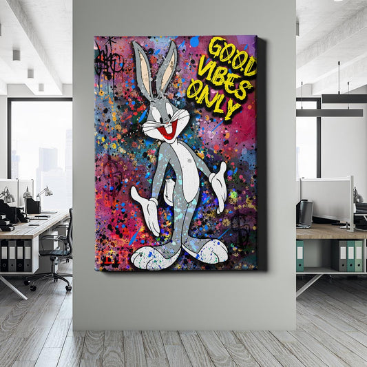 Normaler Preis Von 69,90 €Normaler PreisStückpreis / proVerkaufspreis Von 69,90 €Bugs Bunny bringt lässige Coolness in die Welt der Street Art. Das farbenfrohe Graffiti-Design, kombiniert mit seinem unnachahmlichen Charme und der positiven Botschaft "GOOD VIBES ONLY", macht dieses Kunstwerk zu einem echten Hingucker. Perfekt für alle, die urbanen Flair und Cartoon-Nostalgie lieben.