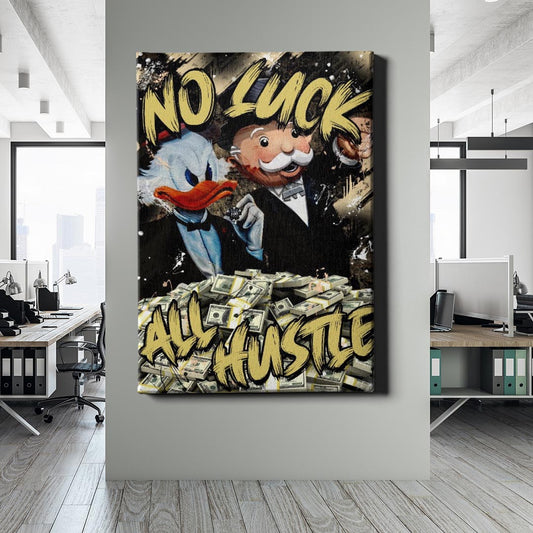 Normaler Preis Von 69,90 €Normaler PreisStückpreis / proVerkaufspreis Von 69,90 €Dieses kraftvolle Street-Art-Kunstwerk zeigt Dagobert Duck und Mr. Monopoly als Symbole für finanziellen Erfolg und harte Arbeit. Der Schriftzug „No Luck, All Hustle“ betont, dass Reichtum nicht vom Zufall abhängt, sondern vom Hustle. Umgeben von Geldscheinen und einem dynamischen Hintergrund ist dieses Bild perfekt für Unternehmer, Investoren und alle, die an ihren Erfolg glauben.