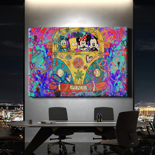 Normaler Preis Von 69,90 €Normaler PreisStückpreis / proVerkaufspreis Von 69,90 €Ein farbenfrohes Kunstwerk, das Abenteuerlust und Retro-Vibes versprüht! Tauche ein in eine magische Reise voller Spaß, Freundschaft und Frieden. Perfekt für Liebhaber von Pop-Art und modernen Kunstwerken!