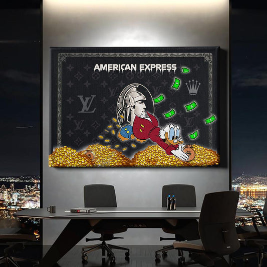 Normaler Preis Von 69,90 €Normaler PreisStückpreis / proVerkaufspreis Von 69,90 €Dieses kreative Kunstwerk vereint Humor und Reichtum in einem einzigartigen Design. Die berühmten Enten genießen ihr Vermögen in einer Welt voller Luxus und Gold. Perfekt für alle, die Kunst mit einem Augenzwinkern lieben!