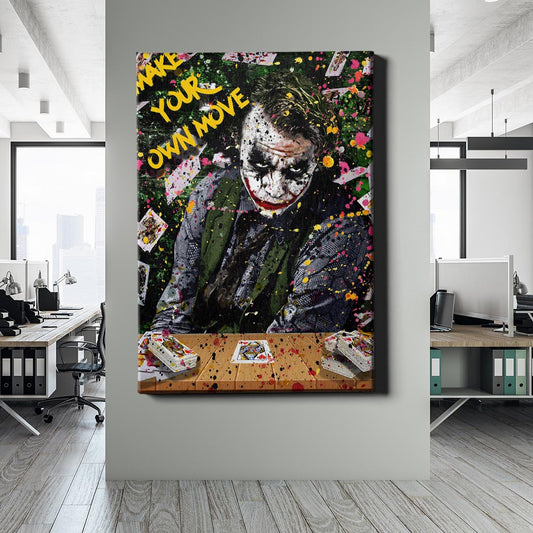 Normaler Preis Von 69,90 €Normaler PreisStückpreis / proVerkaufspreis Von 69,90 €Ein provokantes Kunstwerk, das den berüchtigten Joker inmitten eines chaotischen Spiels zeigt. Die verstreuten Spielkarten und die wilden Farbspritzer spiegeln seine unberechenbare Natur wider, während die Botschaft "MAKE YOUR OWN MOVE" zum eigenständigen Denken und Handeln anregt. Ein Symbol für Strategie, Wahnsinn und Genialität in einem einzigen Bild.