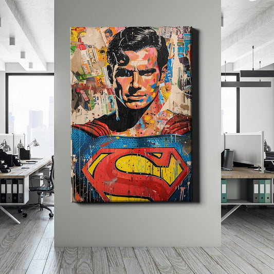 Normaler Preis Von 69,90 €Normaler PreisStückpreis / proVerkaufspreis Von 69,90 €Dieses ausdrucksstarke Kunstwerk zeigt SUPERMAN in einer einzigartigen Collage aus Street-Art-Elementen und Vintage-Comic-Ausschnitten. Die Mischung aus Farben, Texturen und dynamischem Design verleiht dem Bild eine moderne, urbane Note. Perfekt für Comic-Fans, Sammler und Liebhaber ikonischer Superhelden.