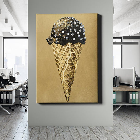 Normaler Preis Von 69,90 €Normaler PreisStückpreis / proVerkaufspreis Von 69,90 €Ein luxuriöses Kunstwerk, das eine goldene Eiswaffel mit funkelnden Edelsteinen auf der dunklen Kugel darstellt. Die Kombination aus Gold und Glitzer vermittelt Eleganz und Extravaganz. Perfekt für alle, die Glamour und Genuss stilvoll vereinen möchten.