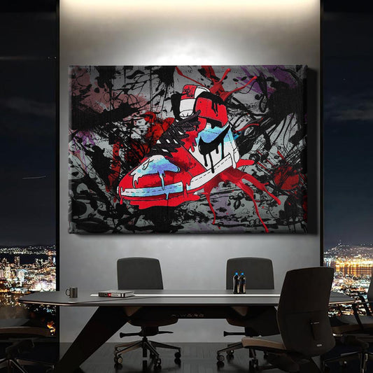 Normaler Preis Von 69,90 €Normaler PreisStückpreis / proVerkaufspreis Von 69,90 €Ein ausdrucksstarkes Kunstwerk, das Sneaker-Kultur, Streetstyle und kreative Energie vereint. Perfekt für Liebhaber urbaner Mode und Kunst.