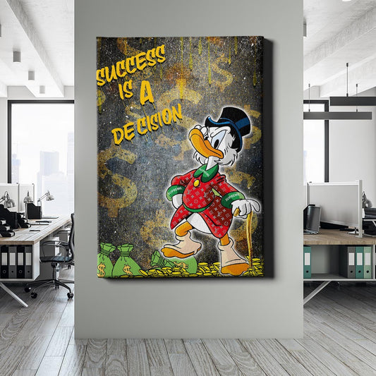 Normaler Preis Von 69,90 €Normaler PreisStückpreis / proVerkaufspreis Von 69,90 €Dagobert Duck verkörpert Erfolg, Reichtum und den eisernen Willen zum Aufstieg. In luxuriöser Designer-Garderobe stolz auf seinem Goldthron stehend, symbolisiert dieses Bild die unerschütterliche Überzeugung, dass Erfolg eine bewusste Entscheidung ist. Eine Hommage an Ehrgeiz und finanziellen Triumph.