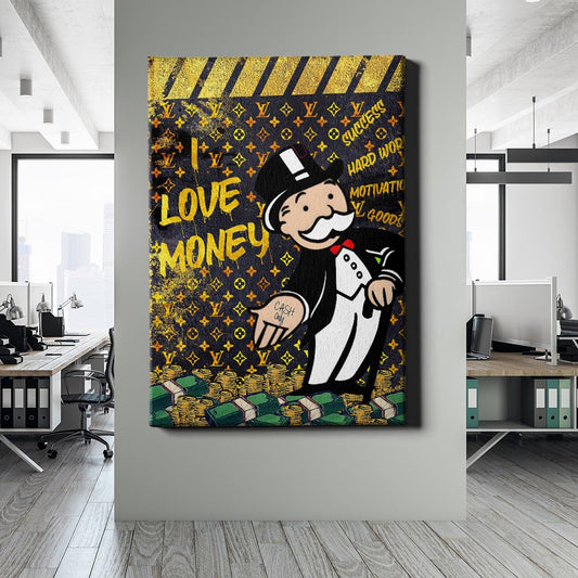 Normaler Preis Von 69,90 €Normaler PreisStückpreis / proVerkaufspreis Von 69,90 €Mr. Monopoly taucht in eine luxuriöse Welt aus Geld, Statussymbolen und Erfolgsslogans ein. Ein humorvolles und zugleich provokantes Kunstwerk über Reichtum, Motivation und den Traum vom großen Geld.