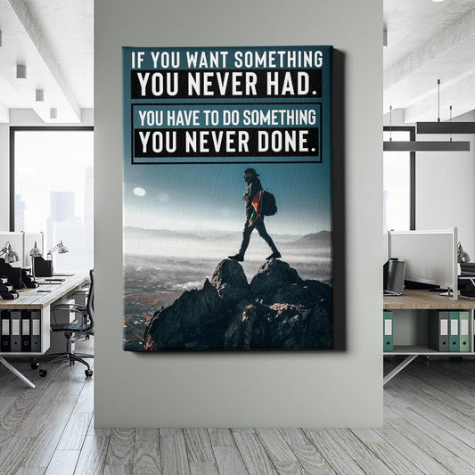 Normaler Preis Von 69,90 €Normaler PreisStückpreis / proVerkaufspreis Von 69,90 €Ein einsamer Wanderer steht auf dem Gipfel eines Berges und blickt über eine weite, nebelverhangene Landschaft. Der motivierende Spruch fordert dazu auf, neue Wege zu gehen, um unerreichte Ziele zu erreichen. Eine inspirierende Darstellung von Durchhaltevermögen und Erfolg.