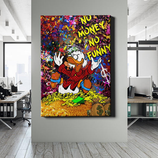 Normaler Preis Von 69,90 €Normaler PreisStückpreis / proVerkaufspreis Von 69,90 €Ein exzentrischer Charakter, umgeben von purem Reichtum, taucht kopfüber in eine Welt aus Goldmünzen und Bargeldsäcken. Das pulsierende Graffiti-Design verstärkt den Ausdruck von Luxus, Spaß und finanzieller Freiheit. Die Schrift "NO MONEY, NO FUNNY" unterstreicht die ironische Botschaft dieses dynamischen Kunstwerks.
