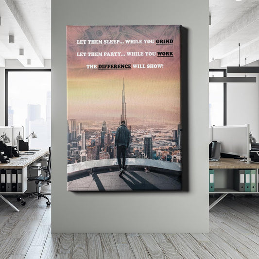 Normaler Preis Von 69,90 €Normaler PreisStückpreis / proVerkaufspreis Von 69,90 €Ein einsamer Visionär steht hoch über der Stadt, mit Blick auf den ikonischen Burj Khalifa – Symbol für Ehrgeiz und unermüdliche Arbeit. Der Himmel färbt sich in sanften Goldtönen, während im Hintergrund Geldscheine subtil in die Szene eingebettet sind. Die Botschaft ist klar: Erfolg gehört denen, die bereit sind, den extra Schritt zu gehen. Während andere schlafen oder feiern, formst du deine Zukunft.