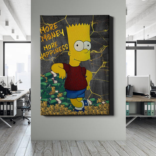Normaler Preis Von 69,90 €Normaler PreisStückpreis / proVerkaufspreis Von 69,90 €Eine ikonische Cartoon-Figur thront selbstbewusst auf einem Berg aus Geld und Goldmünzen. Der dunkle, rissige Hintergrund symbolisiert den unaufhaltsamen Aufstieg, während der Slogan „More Money, More Happiness“ provokant zum Nachdenken anregt. Dieses Kunstwerk vereint Humor, Luxus und eine kritische Perspektive auf Reichtum in einer auffälligen Pop-Art-Inszenierung.