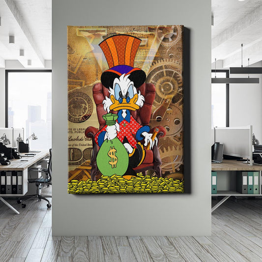 Normaler Preis Von 69,90 €Normaler PreisStückpreis / proVerkaufspreis Von 69,90 €Ein verspielter Blick auf Reichtum und Erfolg. Die ikonische Cartoon-Figur steht vor einem Hintergrund voller Energie und Farben, während sie Säcke voller Geld festhält. Das Kunstwerk vermittelt eine Botschaft von finanzieller Freiheit, jugendlichem Reichtum und einem Leben ohne Grenzen.