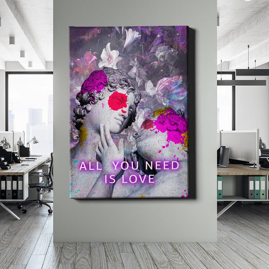 Normaler Preis Von 69,90 €Normaler PreisStückpreis / proVerkaufspreis Von 69,90 €Zwei klassische Marmorstatuen verschmelzen in einem Moment zärtlicher Intimität, umgeben von floralen Elementen, die Liebe und Vergänglichkeit symbolisieren. Die modernen Farbakzente in Pink und Gold verleihen der Szene eine urbane, künstlerische Note und heben die tiefe Emotion hinter dem steinernen Ausdruck hervor. Dieses Werk ist eine Hommage an zeitlose Romantik und den ewigen Zauber der Liebe.