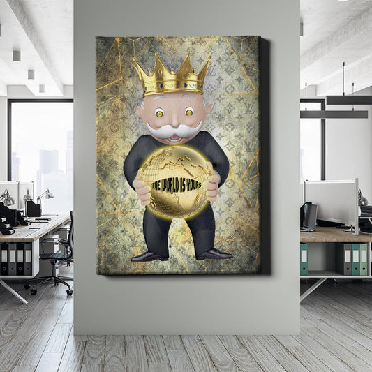 Normaler Preis Von 69,90 €Normaler PreisStückpreis / proVerkaufspreis Von 69,90 €Eine ikonische Figur mit einer goldenen Krone hält die Welt in seinen Händen – ein Symbol für Macht, Erfolg und finanziellen Einfluss. Der luxuriöse Hintergrund mit dezenten Mustern unterstreicht die Botschaft: Wer die Regeln kennt und das Spiel beherrscht, kann die Welt nach seinen Vorstellungen formen. Ein Statement-Piece für alle, die groß denken und gewinnen wollen.