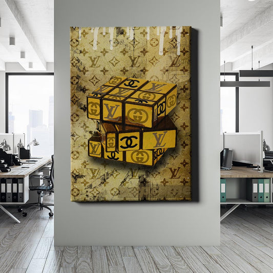 Normaler Preis Von 69,90 €Normaler PreisStückpreis / proVerkaufspreis Von 69,90 €Ein ikonischer Zauberwürfel, verziert mit den Logos von Luxusmarken wie Louis Vuitton, Gucci und Chanel, schwebt vor einem stilvollen Vintage-Hintergrund. Das Kunstwerk symbolisiert das Spiel mit Prestige und Reichtum – ein Puzzle, das nicht jeder lösen kann. Perfekt für Liebhaber von High-Fashion und urbaner Kunst.