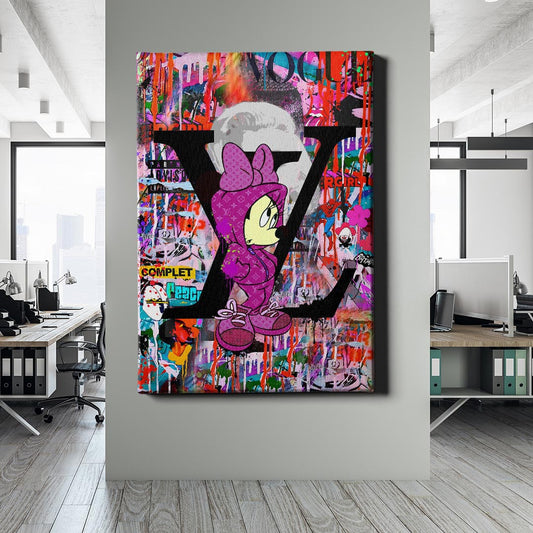 Normaler Preis Von 69,90 €Normaler PreisStückpreis / proVerkaufspreis Von 69,90 €Minnie Mouse trifft auf Luxus in dieser Street-Art-Interpretation, die Eleganz mit urbanem Charme vereint. Vor einem kontrastreichen Schwarz-Weiß-Hintergrund trägt sie ein auffälliges Designer-Outfit, das Mode und Popkultur verschmelzen lässt. Ein frecher Touch für jede moderne Kunstsammlung.