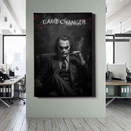 Normaler Preis Von 69,90 €Normaler PreisStückpreis / proVerkaufspreis Von 69,90 €Ein düsteres, kraftvolles Schwarz-Weiß-Kunstwerk, das die ikonische Figur des Jokers in einer eleganten, aber unheilvollen Darstellung einfängt. Gekleidet in einen maßgeschneiderten Anzug, sitzt er entspannt in einem Ledersessel, während er eine Zigarette hält – das perfekte Bild eines skrupellosen Masterminds. Die rauchige Schrift "GAME CHANGER" über seinem Kopf unterstreicht seine unberechenbare, manipulative Natur. Die subtile Integration von Geld- und Blutakzenten macht dieses Werk zu einem Statement über Macht, Chaos und die Kunst, das Spiel zu verändern.