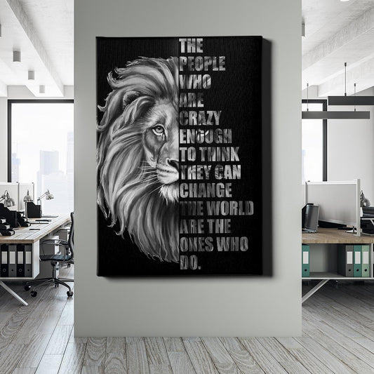 Normaler Preis Von 69,90 €Normaler PreisStückpreis / proVerkaufspreis Von 69,90 €Ein kraftvolles, monochromes Leinwandbild, das einen majestätischen Löwen mit einem inspirierenden Zitat kombiniert: "The people who are crazy enough to think they can change the world are the ones who do." Die harmonische Verschmelzung von Kunst und motivierender Botschaft macht dieses Werk zu einem Ausdruck von Mut, Entschlossenheit und unerschütterlichem Glauben an Veränderung. Perfekt für Visionäre und Macher, die sich nicht mit dem Status quo zufriedengeben.