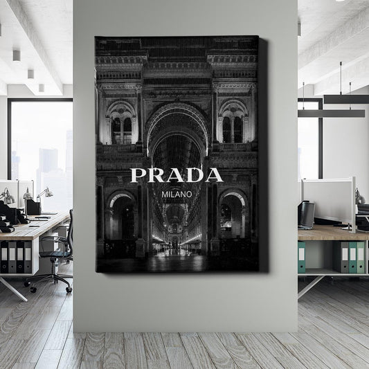 Normaler Preis Von 69,90 €Normaler PreisStückpreis / proVerkaufspreis Von 69,90 €Die ikonische Galleria Vittorio Emanuele II in Mailand strahlt in dieser Schwarz-Weiß-Komposition zeitlose Eleganz aus. Das Bild fängt die majestätische Architektur ein und unterstreicht den Luxus, den Marken wie Prada in der Modemetropole verkörpern.