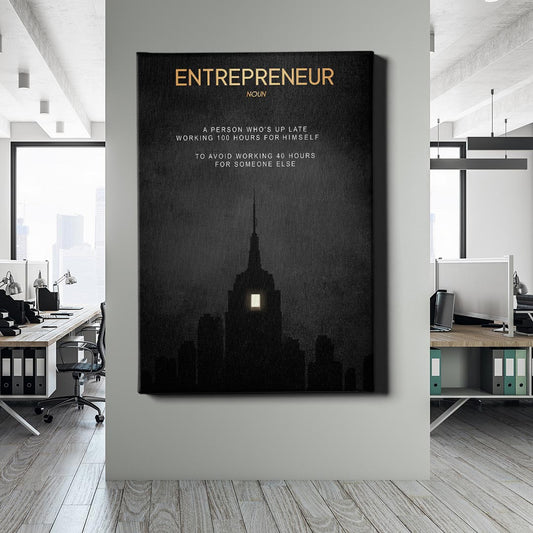 Normaler Preis Von 69,90 €Normaler PreisStückpreis / proVerkaufspreis Von 69,90 €Dieses minimalistische Kunstwerk definiert den Begriff „Entrepreneur“ auf eine inspirierende Weise: „A person who’s up late working 100 hours for himself to avoid working 40 hours for someone else.“ Das dunkle Stadtpanorama mit einem einzigen erleuchteten Fenster symbolisiert die harte Arbeit und den unermüdlichen Antrieb eines Unternehmers. Perfekt für alle, die sich täglich an ihre Ziele und ihren Ehrgeiz erinnern möchten.