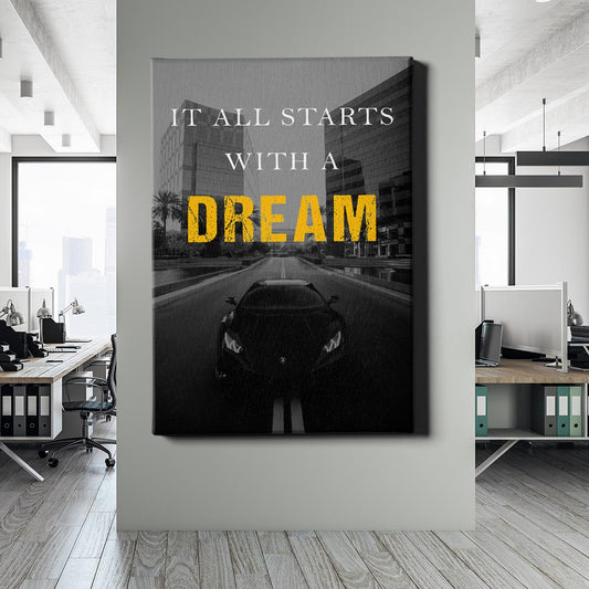 Normaler Preis Von 69,90 €Normaler PreisStückpreis / proVerkaufspreis Von 69,90 €Ein schwarzer Lamborghini fährt auf einer leeren Straße zwischen modernen Glasgebäuden – ein Symbol für Erfolg, Ambition und den unaufhaltsamen Willen, Träume zu verwirklichen. Der monochrome Stil mit dem kontrastreichen gelben Schriftzug „DREAM“ verstärkt die motivierende Botschaft: Alles beginnt mit einer Vision, die Realität werden kann.
