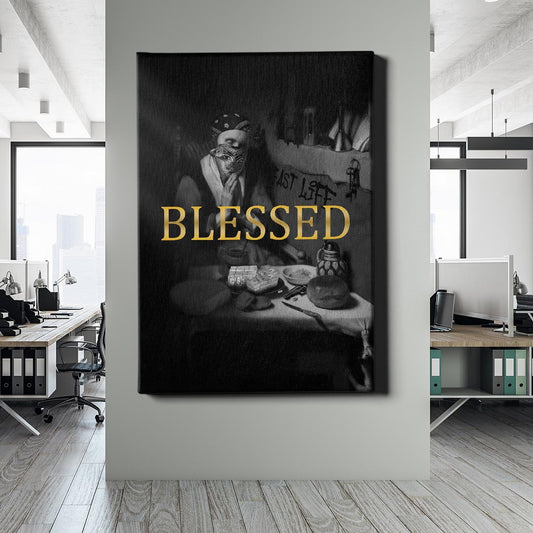 Normaler Preis Von 69,90 €Normaler PreisStückpreis / proVerkaufspreis Von 69,90 €Ein düsteres, intensives Kunstwerk, das den Kontrast zwischen Straßenleben und spiritueller Dankbarkeit einfängt. Die schwarz-weiße Darstellung, kombiniert mit goldener Schrift, verleiht dem Bild eine tiefgründige, fast sakrale Atmosphäre. Elemente wie Geldstapel, Waffen und Maskierung spiegeln die harte Realität des Streetlife wider, während der Schriftzug "BLESSED" eine provokante Botschaft vermittelt. Perfekt für Liebhaber von Urban Art mit tiefgehender Symbolik.