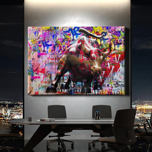 Normaler Preis Von 69,90 €Normaler PreisStückpreis / proVerkaufspreis Von 69,90 €Ein kraftvolles Kunstwerk, das den legendären Charging Bull in einer explosiven Mischung aus Graffiti und moderner Kunst zeigt. Symbol für Stärke, Erfolg und den unaufhaltsamen Willen, voranzukommen. Perfekt für alle, die von Wachstum und Motivation inspiriert werden.