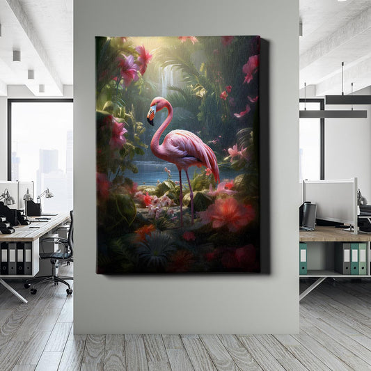 Normaler Preis Von 69,90 €Normaler PreisStückpreis / proVerkaufspreis Von 69,90 €Ein eleganter Flamingo steht anmutig inmitten eines tropischen Paradieses. Die üppige Vegetation, das sanfte Licht und die leuchtenden Blüten erzeugen eine Atmosphäre der Ruhe und Exotik. Der sanfte Wasserfall im Hintergrund verstärkt das Gefühl eines verborgenen, unberührten Paradieses. Dieses Kunstwerk fängt die Schönheit und Gelassenheit der Natur perfekt ein.
