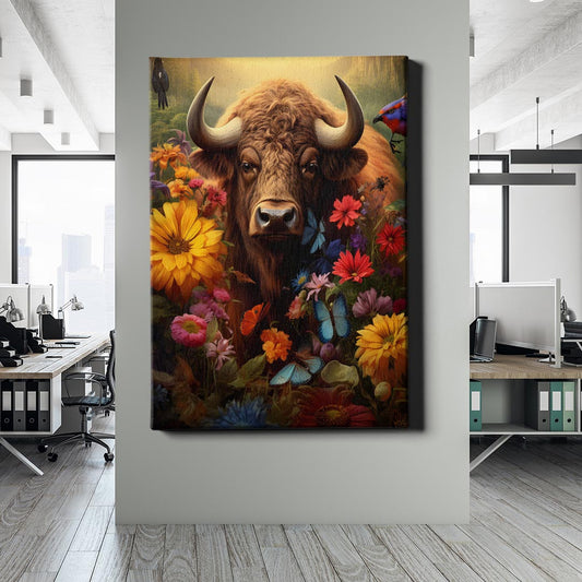 Normaler Preis Von 69,90 €Normaler PreisStückpreis / proVerkaufspreis Von 69,90 €Ein kraftvoller Bulle ruht inmitten eines farbenprächtigen Blumenmeeres, umgeben von Schmetterlingen und Vögeln. Die Szene strahlt eine perfekte Balance zwischen Stärke und Sanftheit aus, ein Symbol für die Verbundenheit zwischen Tier und Natur.